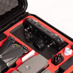 - Con questo inserto, il vano multifunzionale di una custodia MC-CASES Mavic 2 Explorer esistente viene completato in modo che il DJI Smart Controller compresi gli accessori (alimentatore e cavo) si adatti perfettamente e sia protetto.