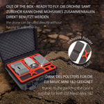 - ✔ All-in-one: Der DJI Mini Transportkoffer „Explorer Edition“ von MC-CASES ist der ideale Begleiter auf Reisen und die perfekte Aufbewahrung für den Copter inklusive sämtlichen Zubehör der DJI Mavic Mini und auch der umfangreichen DJI Mavic Mini Combo. Stets alles griffbereit – nichts geht verloren. Selbst die großen Propellerschützer / Propguards finden Platz im Koffer. Trotz der kompakten Abmaße (336 x 300 x 148mm) sind alle Teile im direkten Zugriff.