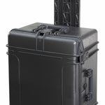 wasser- und staubdichter Trolley-Koffer mit ausziehbarem Griff in schwarz, inkl. Schaumstoffeinlagen mit Würfelstanzung zur individuellen Anpassung und 2 stabilen Leichtlaufrollen Innenmaß: 620 x 460 x 340mm Aussenmaß: 687 x 528...