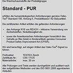 - Herstellung des Schaumstoffes in Deutschland unter Berücksichtigung strenger Vorschriften für die Schaumstoffverarbeitende Industrie. Unser Schaumstoff ist nach dem internationalen einheitlichen Oeko-Tex-Standard zertifiziert und damit geprüft auf gesundheitliche Unbedenklichkeit sowie auf sozial- und umweltverträgliche Produktionsbedingungen.