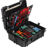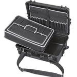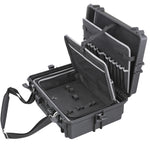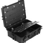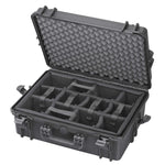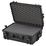 Wasser- und staubdichter Koffer in schwarz, inkl. Schaumstoffeinlagen mit Würfelstanzung zur individuellen Anpassung.