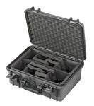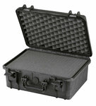 water- and dustproof case in black, empty / cube foam / camera insert / organisation function inner dimensions: 380 x 270 x 160 mm depth lid+bottom: 36 + 124 mm...