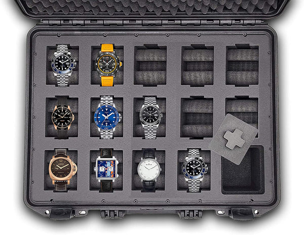 MC-CASES® Uhrenkoffer Transportkoffer für bis zu 14 Uhren - Wasserdicht - Abschließbar - Extrem geschützt -